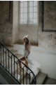 LUNA - Dos-nu - Manches gigots - Jupe cercle - Dentelle 100% coton - Jupon en crèpe de soie et viscose