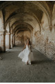 MARCIA - Dos-nu - Décolleté plongeant - Manches bouffantes - Jupe cercle - Tulle brodé - Jupon en crèpe mat de soie et viscose